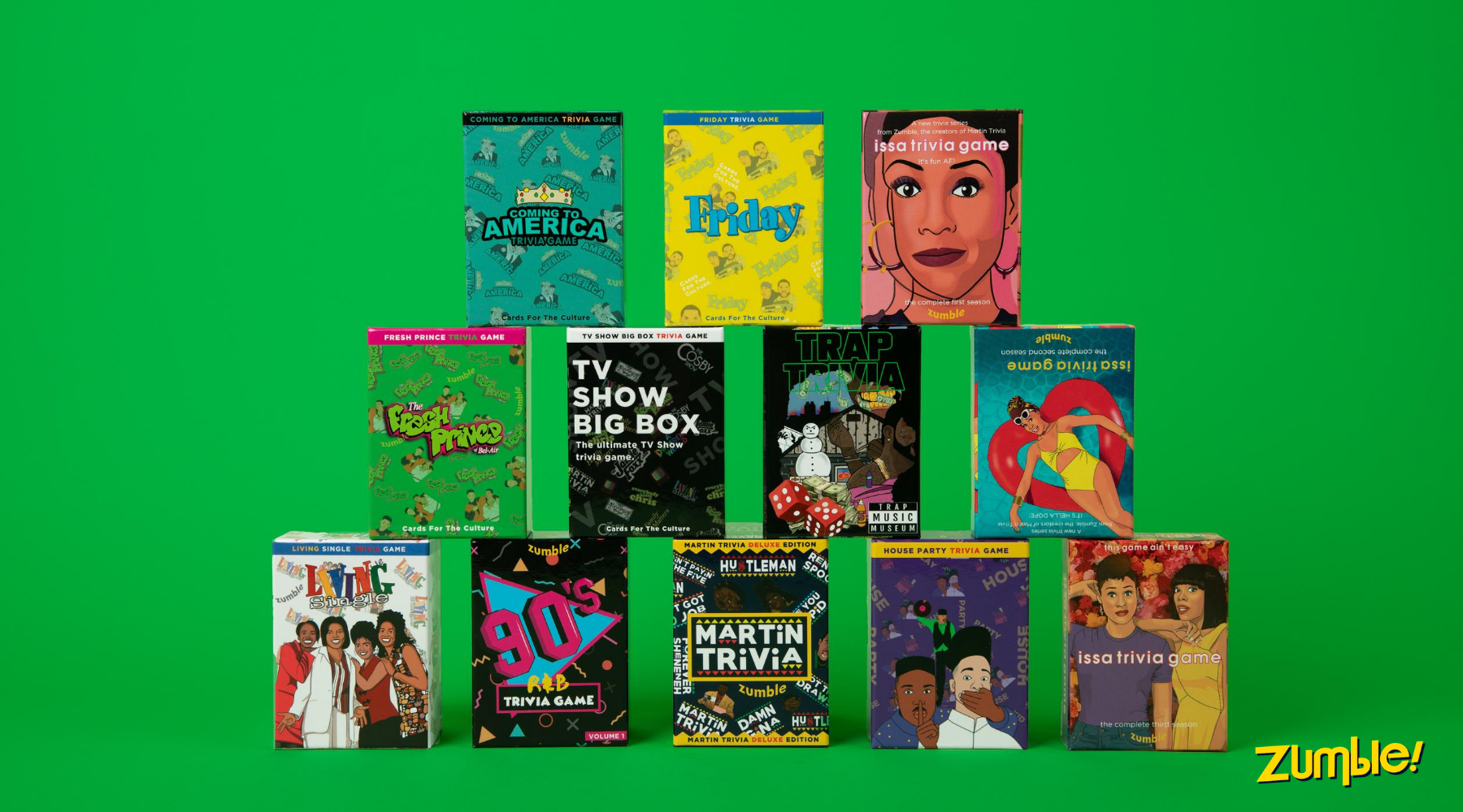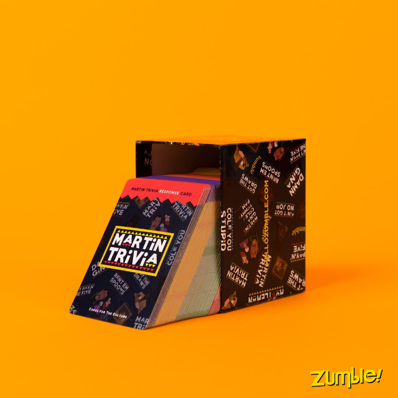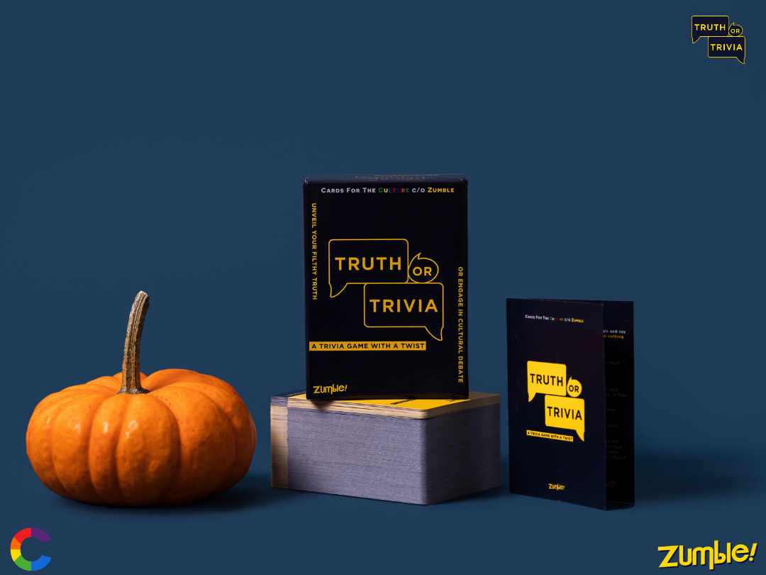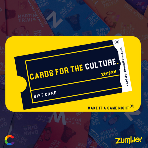 We started Cards For The Culture c/o Zumble 3 years ago with one simple premise: We believe that people who enjoy shared experiences with loved ones, make the world a better place. We've grown quite a bit since then, but that guiding principle hasn't changed. Today we have a whole range of trivia games made using feedback suggestions from people like you. We're happy you're here, and really appreciate your support.